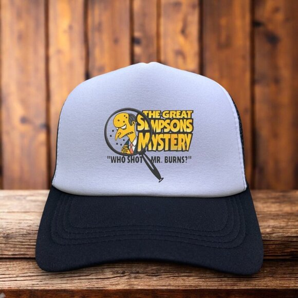 The Simpsons Who Shot Mr. Burns? Mens Trucker Hat Black Snapback 90s Retro TV