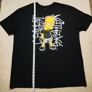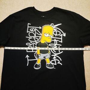 This brand new Simpsons Bart Graphic T-Shirt is a black cotton shirt featuring a crew neck and short sleeves, making it perfect for all seasons. With a graphic print of Bart Simpson, this regular fit t-shirt is machine washable and ideal for fans of the cartoon theme. It is available in size XL and is suitable for men who enjoy wearing comfortable and stylish clothing. The Simpsons brand adds a nostalgic touch to this classic piece of men's clothing.