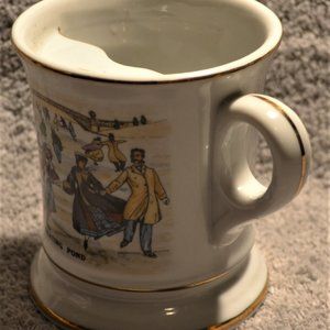 Called " The Skating Pond" this is a vintage mustache shaving mug. Nice decorative piece for bathroom. 4 1/2 inches high, 3 1/2 inch diameter.