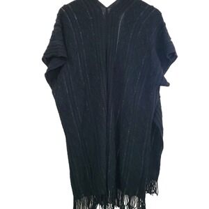 The Skyline Collection Shawl Womens One Size Black Knit Fringe Open Relaxed
