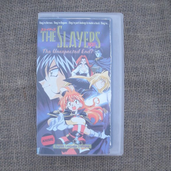 The Slayers Next "The Unexpected End?" VHS anime tape. English Dubbed. Software Sculptors, 1996. Approximately 100 minutes long. Former rental, in a clear plastic clam shell case. Tape good, tape label intact. Great for any fan!