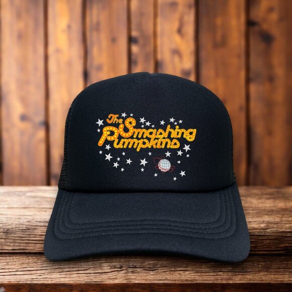 The Smashing Pumpkins Mens Trucker Hat Black Snapback Grunge Metal Rock Cap