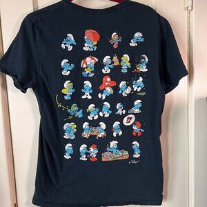 The Smurfs Black Tee Size M Peyo Graphic Full Cast Family Classic