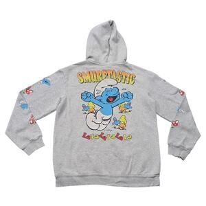 The Smurfs Smurftastic Gray Sweater Hoodie. Preowned condition with some marks, may come out in wash.