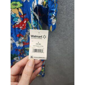 The Smurfs Tropical Pattern Short Sleeve Hawaiian Shirt 34/36 By Mad Engine