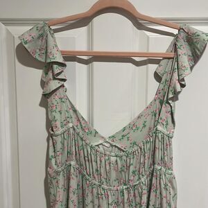 Light green with a dainty pink floral print sundress