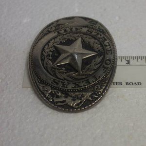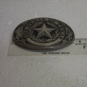 This state of Texas belt buckle is in good preowned condition with light surface scratches as can be expected with a preowned item of this type. Buckle looks to hold a belt between 1.25 and 1.5 inches wide. Thanks for looking.