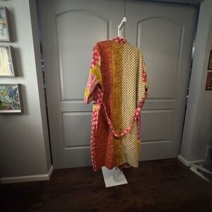 HANDMADE ONE OF A KIND TRUE DOPAMINE DRESSING OBSESSED 🎀🎀🎀 🥰 ALL KANTHA PIECES ARE HANDMADE FROM RECYCLED FABRICS. SOME PIECES MAY HAVE “IMPERFECTIONS” OR BETTER YET “PERSONALITY” THESE MINOR IMPERFECTIONS DO NOT ALTER OR AFFECT THE PRICE 😍 CARE INSTRUCTIONS TREAT YOUR KANTHA LIKE A DELICATE GARMENT (BECAUSE IT IS ❤️) Wash on delicate or hand was cycle No heat dry but a “fluff” cycle can be used Hang dry is recommended 😘 SIZING NO SIZE TAGS! PLEASE REQUEST MEASUREMENTS IF NOT LISTED OR REQUEST IN CHAT DURING A LIVE SHOW Handmade in India KANTHA Stitched Cotton Cardigan Pockets One of a kind