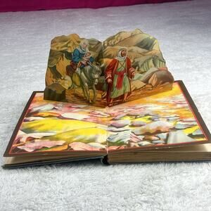 This lovely volume has several black and white illustrations, as well as 9 full color pup up illustrations, all in good working order. Light wear to pages, as well as yellowing and a few spots here and there. The cover is missing the dust jacket and there is wear and scuffing to edges. Cover is coming loose, but still attached. There is a name and address on the title page. Christine S King who lived on High Street in Kings Lynn, Norfolk, England. I did a bit of a research for her and believe she was born in 1928, to Albert and Beatrice King. I do so enjoy finding the previous owner's of these old gems.