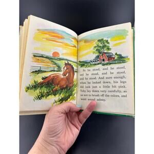 Hardcover children's book from the 1960's. The Story of Toby by Jane Shearer Moore, illustrated by Dorothy Grider. Book is in good condition with expected wear and tear. Some light scribbles, but no major creases or rips.
