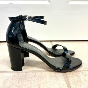 The Stuart Weitzman Women's Nearlynude Strap Sandal black block heels size 6M