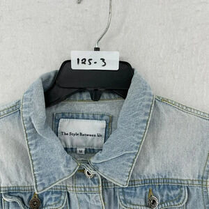 The Style Between Jacket Women's M Blue Button-Up Collared Wash Cropped Denim