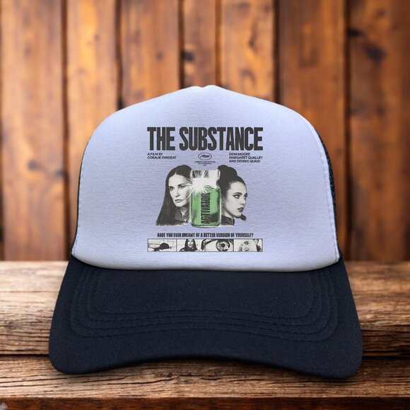 The Substance Mens Trucker Hat Black Body Horror Demi Moore Dennis Quaid Cap