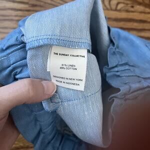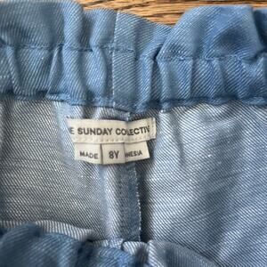 The Sunday Collective blue chambray like linen blend shorts with functional pockets and elastic pull on style waistband size 8 years. Great summer basic in linen & cotton blend. VVGUC - minor wash wear, if any, maybe EUC.