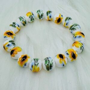 Ceramic Sunflower Beaded Bracelet, 10mm ceramic beads - Elastic bind