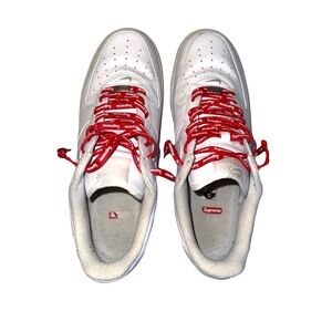 The Supreme x Nike Air Force 1 Low White Red Laces Men’s 12 Excellent Condition