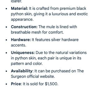 The Surgeon, custom made python black leather clog. Mens size 11