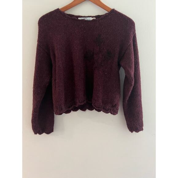 The Sweater Venture 100% Baby Alpaca Crop Sweater Scalloped Hem Size Small JL