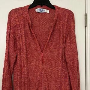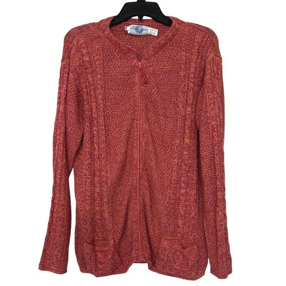 The Sweater Venture Cotton Pink Hand Knit Space Dye Zip Up Sweater Size XXL