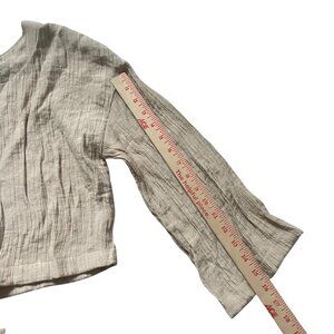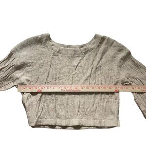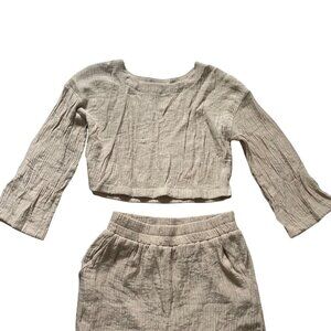 This coordinated set combines a crop top with long sleeves and matching pants, offering a chic and relaxed look for casual outings or lounging. The breathable linen blend ensures comfort throughout the day.