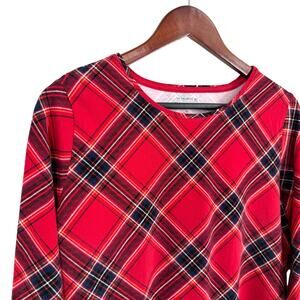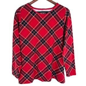 The TALBOTS Tee Plus Size 1X Red Cozy Soft Plaid Christmas Blouse Shirt Top