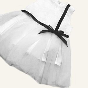 This gorgeous little dress is by rad Swedish brand The Tiny Universe. The are sooooo right up my alley! B&W designs with subtle but strong details. This rad little piece has a white floral detailed woven bodice, ribbon detailing across the front and back, triple layered tulle overlay for added volume, fully lined with thin cotton and cool branding at the back. Get this in your bundle with some flats, cardigans and jacket for a styled closet discount!