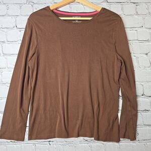 The Talbots Tee Mocha Brown Round Neck Long Sleeve 100% Pima Cotton Size XLP