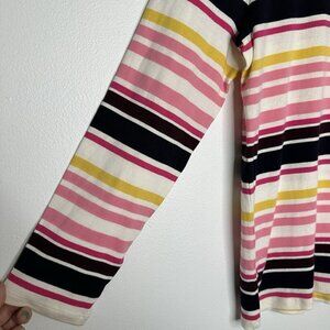 The Talbots Tee Womens Size XL Striped Multicolor Long sleeve cotton Pink Blue