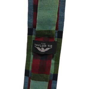 Men's Preppy 100% Cotton Square Tip "The Taylor Tie". Multi-Colored Green, Blue and Maroon. Style: Striped/Textured, block pattern. 52" Length, 2" Width. Comes ready to wear, clean and stain free. Perfect for Spring-Winter seasons.