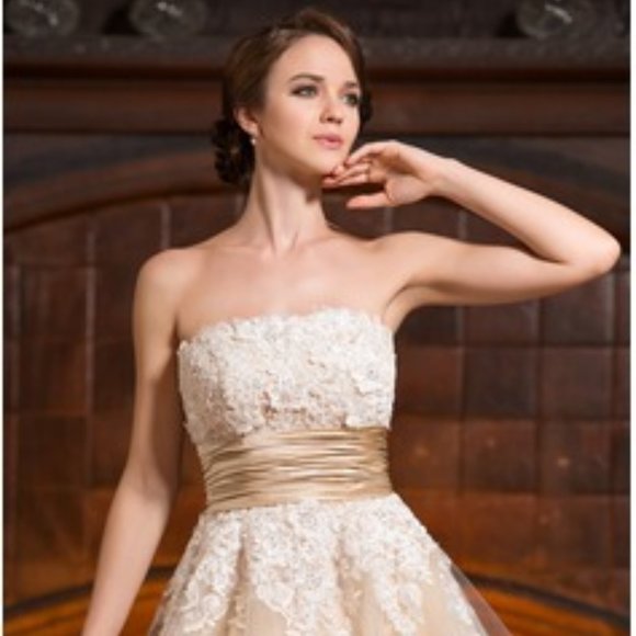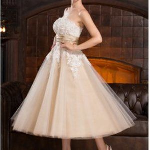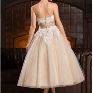 Ball-Gown Strapless Tea-Length Tulle Wedding Dress With Beading Appliques Lace Sequins
