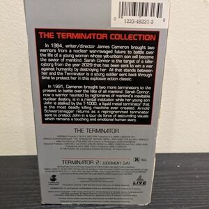 Experience the action-packed thrill of 'The Terminator Collection' on VHS. Featuring a sleek black and gray design, this collection is a must-have for fans of classic sci-fi.