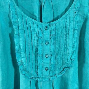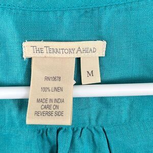This dress is made by The Territory Ahead. It’s a blue 100% linen sleeveless sundress. Size medium and in great condition. Smoke and pet free home.
