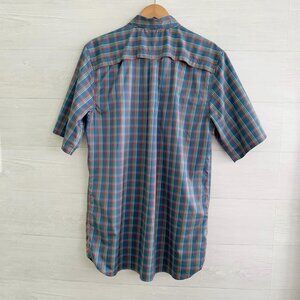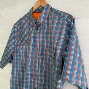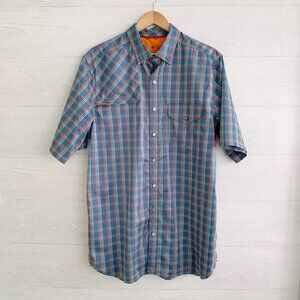 The Territory Ahead - Blue plaid short sleeve active button up shirt, L