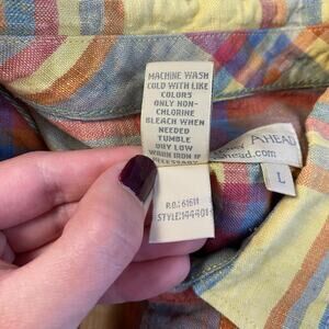 The Territory Ahead Linen Button Up Tee Men’s Size L Multicolor Hiking Beachy