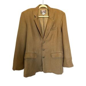 The Territory Ahead Linen Silk Herringbone Blazer Women’s Tan 3 Button Classic M