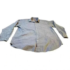 The Territory Ahead Mens Blue Striped Long Sleeve Button Up Shirt Size L Cotton