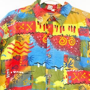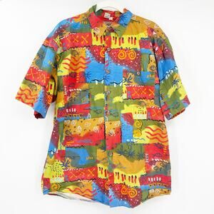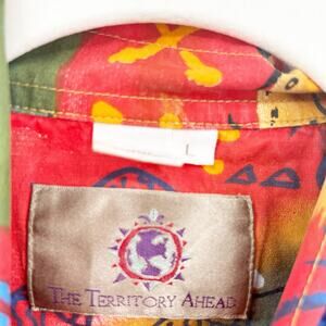 The Territory Ahead Mens Vintage Tropical Beach Aztec Button Up Camp Shirt in Multicolor. Size Large.