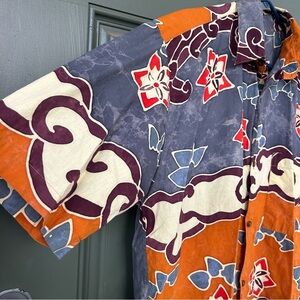 The Territory Ahead Shirt Mens Large Orange Geometric Abstract Floral Hawaiian