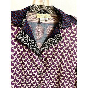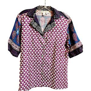 The Territory Ahead Women Button Up Shirt Size S Silk Rayon Collard Short Slvs.