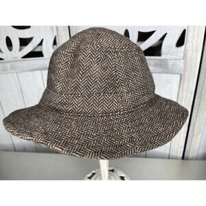 The Territory Ahead Wool Blend Bucket Hat Herringbone Knit Brown Soft Medium