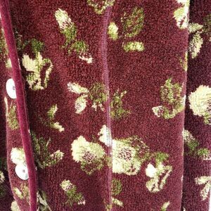 The Territory Ahead Womens Floral Sherpa Velour Fleece Jacket Blazer Maroon