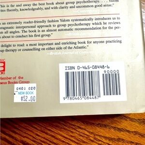 This is the 4th edition of Yalom’s The Theory And Practice Of Group Psychotherapy. This is a hardcover text in excellent used condition. I purchased this book for $52.