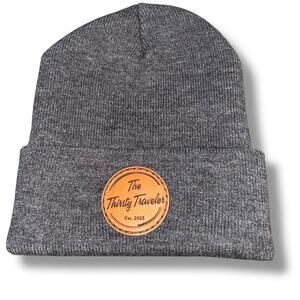 The Thirsty Traveler Men's Beanie Skull Cap Hat YP Classics Cuff OS Gray Est 2023 Holiday Vacation Beer Wine Beverage