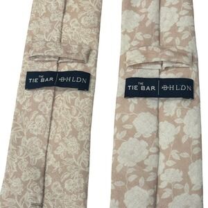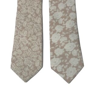 The Tie Bar BHLDN Mens Floral Linen Tie Wedding Party Necktie Tan Beige lot of 2