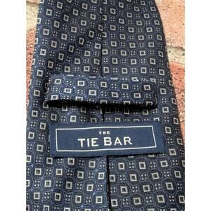 The Tie Bar Mens Blue Navy Geometric 100% Silk Neck Tie Stain Resistant LONG **