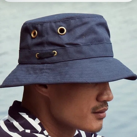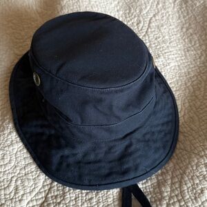 The Tilley Hat Navy Bucket Hat with Chin Strap