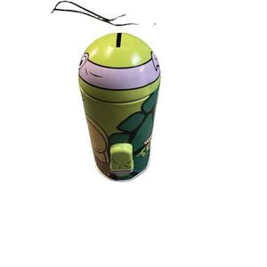 Add a touch of nostalgic fun to your savings routine with this charming Donatello tin piggy bank. Standing at 7.5 inches tall with a maximum width of 4 inches, it's the perfect size to fit on your shelf or desk. Good condition and ready to guard your coins!