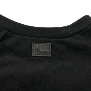 The Tiny Universe (from Sweden) Black Sweatshirt with red plaid bow tie attached.
