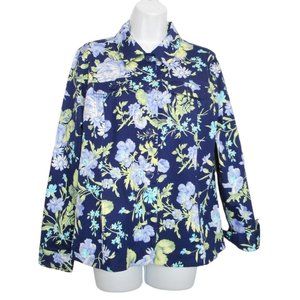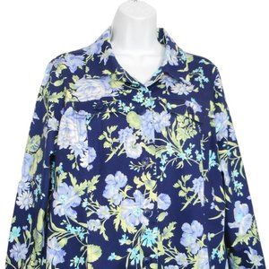 The Tog Shop Jacket M Blue Cotton Floral Lightweight Pockets Buttons Casual