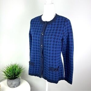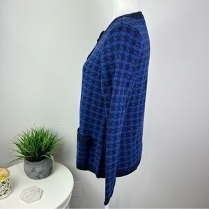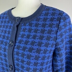 The Tog Shop Womens Cardigan Sweater Blue Black Houndstooth Long Sleeve Pocket S